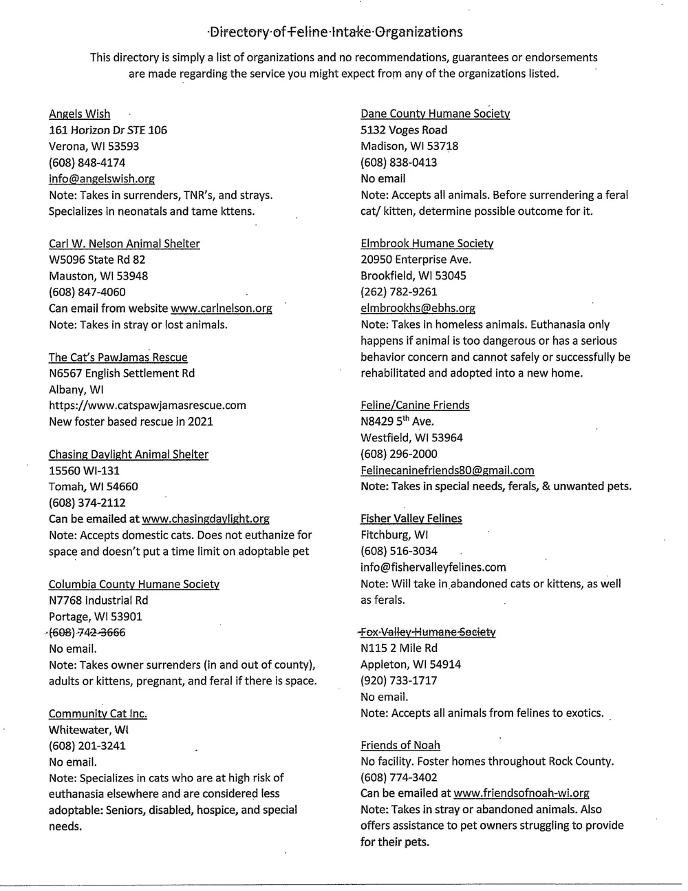 Up to 8 cash back Madison Cat Project is an Adoption Guarantee organization which has been working in the community to find homes for cats who might otherwise be euthanized at. At Barn Cats Inc we have healthy sterilized cats in desperate need of new outdoor homes. Madison Cat Project Foster November 22 2021 Posting Komentar Both have provided services and companionship to humans for many centuries.